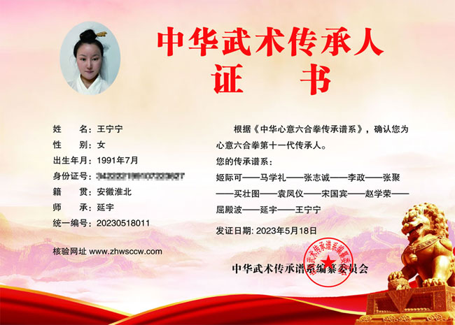 2023年拜宋门心意六合拳第十代传承人延宇为师。