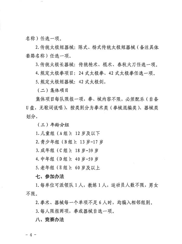 为贯彻落实县委十三届八次全会暨县委经济工作会议精神,积极打造“百场赛事”,做好赛事经济,培育我县赛事品牌,做活太极拳产业经济、巩固发源地地位,拓展“太极+”产业文章,助力“太极文化名城”建设。实施“拳师办赛+官方助力”计划,2025年将举办陈家沟太极拳家乡赛系列赛、总决赛,现将于5月3日-4日,在陈家沟太极拳文化国际交流中心举办2025年陈家沟太极拳家乡赛暨“启旺杯”太极拳交流大赛。望各单位收到通知后,积极准备,狠抓训练,届时参加。