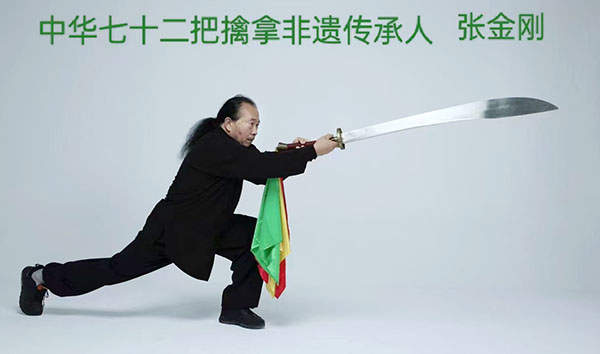 张金刚爱武如迷,更喜欢武坛绝技擒拿法,经过几十年的研究,突出擒拿攻防技击,把几位老师的特长优点汇聚在一起,形成了自己的风格,通过研究得岀结论,珍贵的非遗擒拿法是根据杠杆力与旋转力的科学原理,控制人体的所有关节与穴位,并总结岀五个字的精华:扣,缠,裹,切,随。从原传统的基础上又把擒拿提高了一大步,得到了武林界的高度认可,被武林界称为:擒拿泰斗。